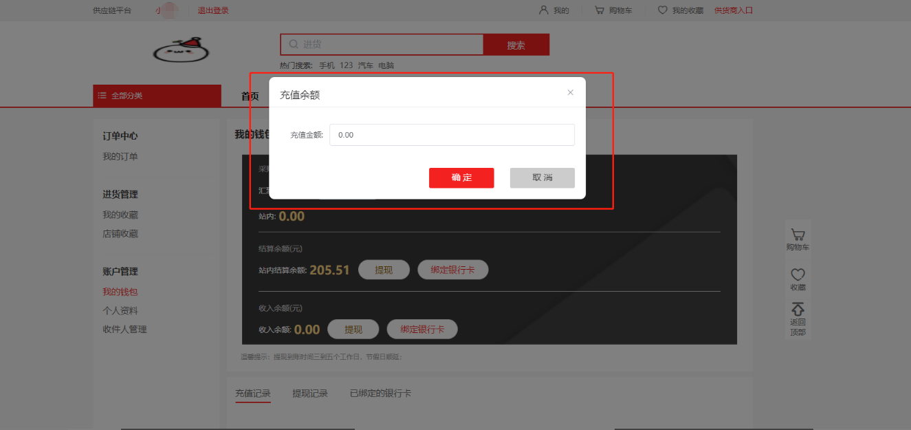 Ø 点击充值会弹出充值金额输入框(图2)