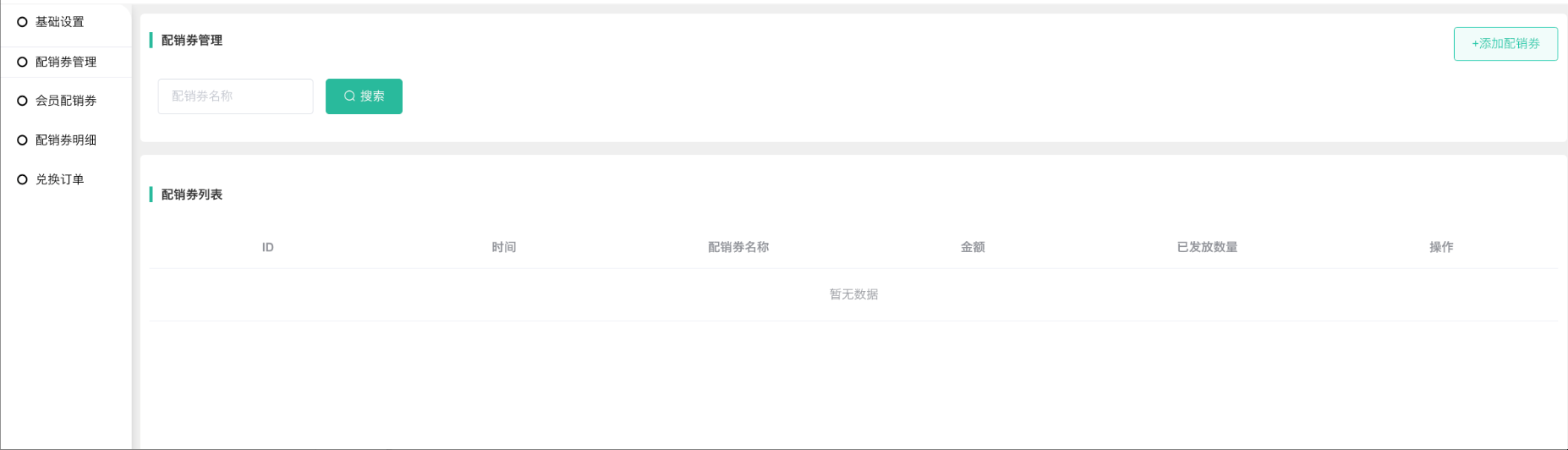显示所有配销券,在当前列表可查看到已发放数量,点击操作--明细跳转到配销券明细页面,可以二次编辑,支持后台手动发放。