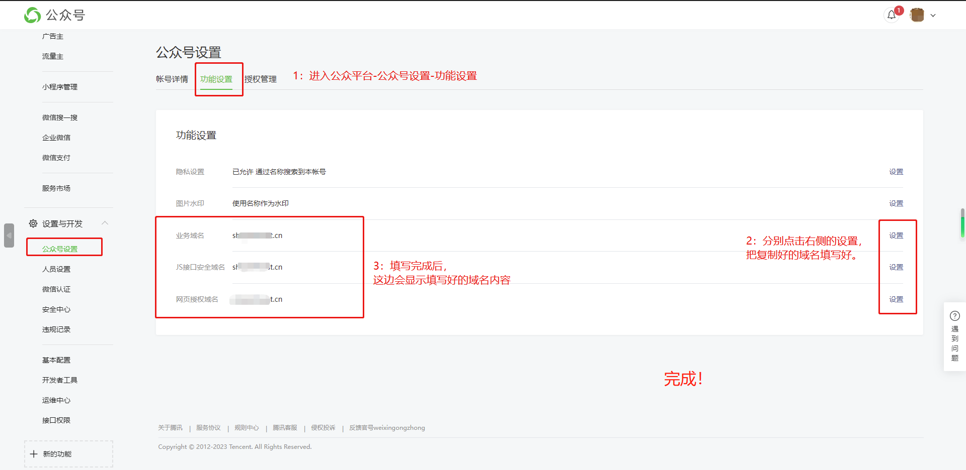 3:点击公众号设置-功能设置-下载JS文件。