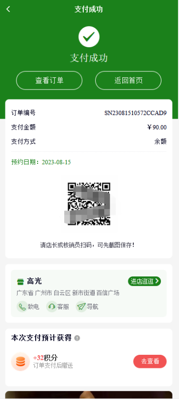7、预约商品订单:会显示预约日期、核销码、门店信息